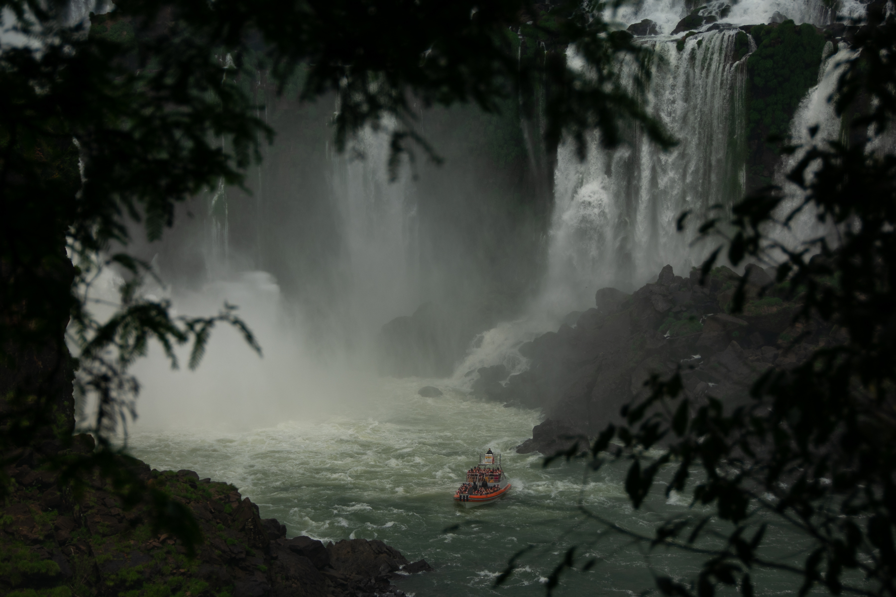 ’s Morgens laat ik mij uitgebreid gaan op het ontbijtbuffet want de kans dat er deftig te eten is in het park, is klein. Even lijkt dat het ik niet eens zo ver zal geraken, want tickets betalen met mijn bankkaart lukt niet. Mastercard wil de automaat ook al niet. Heb ik nog mijn backup bankkaart, die ik toevallig bij heb, oef, ik kan toch binnen. Samen met een kleine duizend andere mensen, zo lijkt het toch, mag ik de bus op. Bij de eerste halte spring ik er al af voor een tochtje met de boot. De Macuco safari begint met een treintje door de jungle, met wat uitleg van de gids, gevolgd door een wandelingetje door diezelfde jungle, met ietwat meer uitleg, om aan te komen bij het water. Daar krijgen we de keus voor de natte of de droge boottocht. Er is niemand die voor de droge kiest. Even zwembroek aan en ik ben er klaar voor. De speedboot gaat er direct wild voor en het duurt niet lang voor een golf water over de boord klotst. Er zijn dan ook een ferme stroomversnellingen in de rivier. Na een kleine 5 min draaien we een bochtje om dat een eerste blik geeft op de watervallen. En die zijn fantatisch. En klein, gelijk die grap van Jeroen Leenders, maar dan echt, want ze zijn in de verte. Wat verder krijgen we een blik op de rest van de watervallen, maar een goed beeld ervan krijg ik nog niet. We worden er volop foto’s genomen, er passeert zelfs een cameraman, voor het geval je fan bent van selfies getrokken door iemand anders. Daarna is het tijd voor de douche, de kapitein stuurt vlot de boot onder een van de watervallen, en wat is die koud en hard. We gaan er verschillende keren onder, met geroep en gefilm alom. Eens iedereeen volledig doorweekt is, varen we terug, waarbij we nog wat kunstjes doen bij de vele stroomversnellingen, voor het geval we al opgedroogd waren. Eens omgekleed spring ik terug op de bus en stap af bij de wandeling.