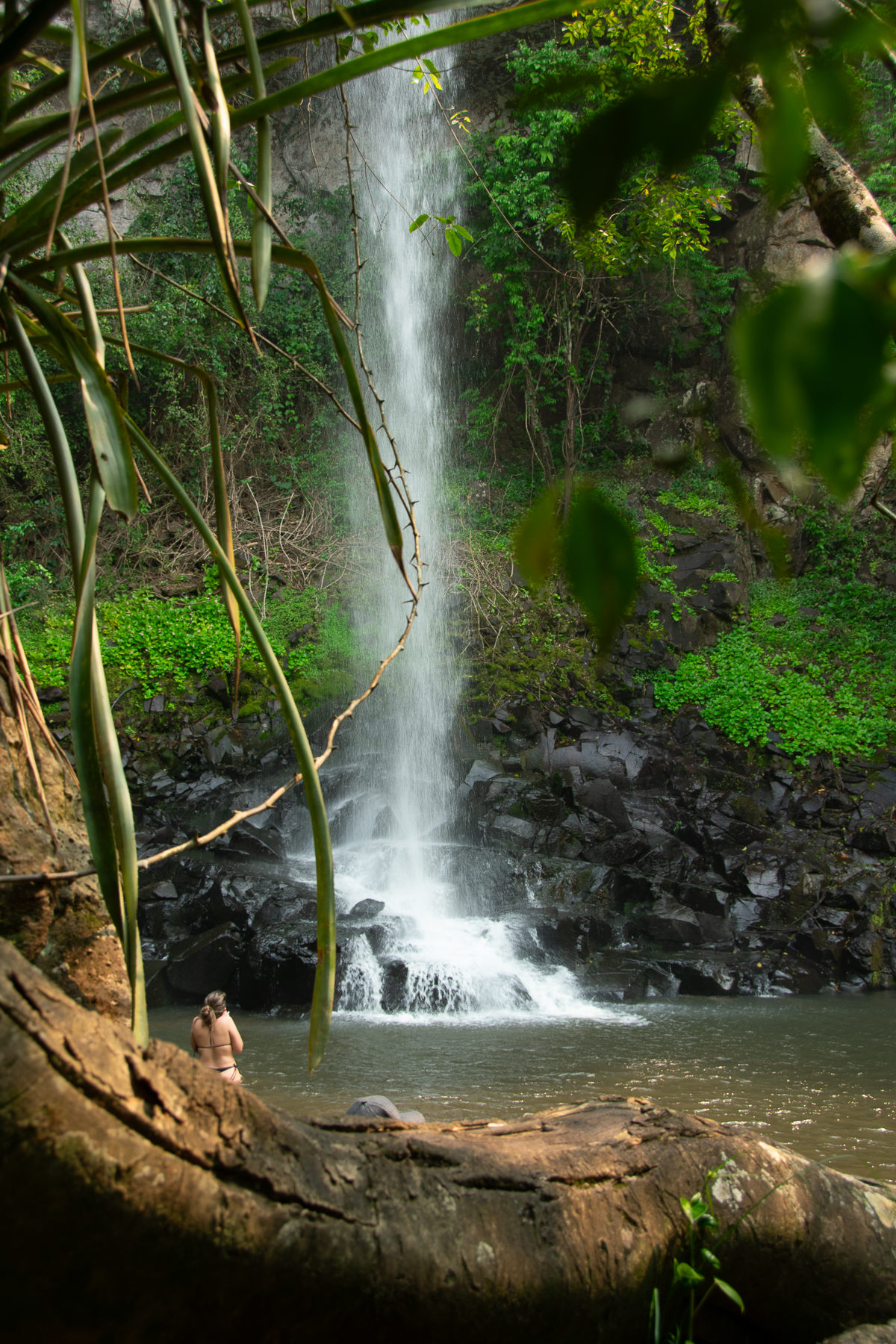Tegen dan is het middag en eet ik mijn koekjes op naast een metalen hek aan de eetruimte, die blijkbaar moet beschermen tegen apen en coati’s. Maar die zijn niet aanwezig. Ik zag op de kaart nog een andere trail, die eindigde bij een waterval, en aangezien ik genoeg tijd heb, en echt wel nog eens mijn benen wil strekken na de week stilzitten in Brazilië, ga ik ervoor. Bij het begin van de trail zie ik wat instructies wat je moet doen als je een jaguar of een puma tegen komt … Deels geintrigeerd, deels voorzichtig ga ik het paadje op. Ik kijk af en toe eens achter mij en bij elk “groot” geluid uit de jungle links en rechts kijk ik toch even het struikgewas in. Na een goede 20 minuten kom ik wat volk tegen in de tegenovergestelde richting, meer dan verwacht eigenlijk. Lijkt me dat er hier geen zullen gespot worden vandaag, als het zo druk is. Als ik aankom bij de waterval, zie ik in de poel ervoor wat volk zwemmen, vandaar dat het wel wat drukker is dan verwacht. Er staat dan wel een bordje “do not swim”, maar de mens die dit bord gezet heeft, wist waarschijnlijk zelf ook wel hoe onnuttig zijn werk was. Een zwembroek heb ik helaas niet bij, dus het blijft bij wat pootjebaden.
