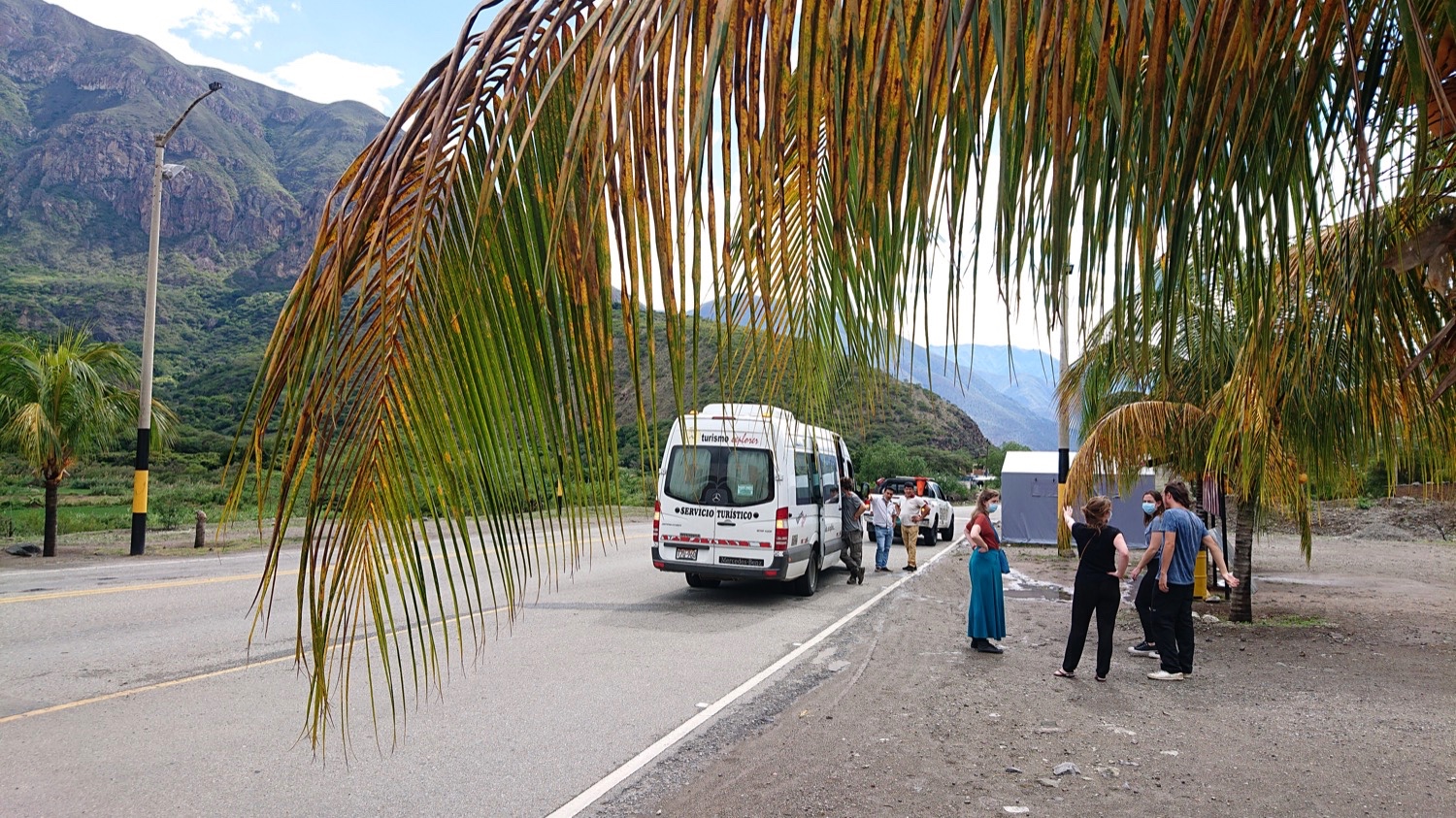 Er is superveel volk rond onze bus, er worden foto’s genomen door de toeristische dienst, het is duidelijk een goed moment voor een beetje promotie. Wel te begrijpen want toerisme gaat even stilliggen, dus kun je maar beter goed in het nieuws komen met wat je doet voor je toeristen in tijden van crisis. Ik grijp de plaats met beenruimte in de bus, das de laatste rij, met zetels die niet kunnen versteld worden, naast een paar dozen waarvan de inhoud niet gekend is en een paar wandelstokken ter hoogte van mijn hoofd. Al vlug werd duidelijk dat dat geen beste keuze was, maar we zijn op weg!